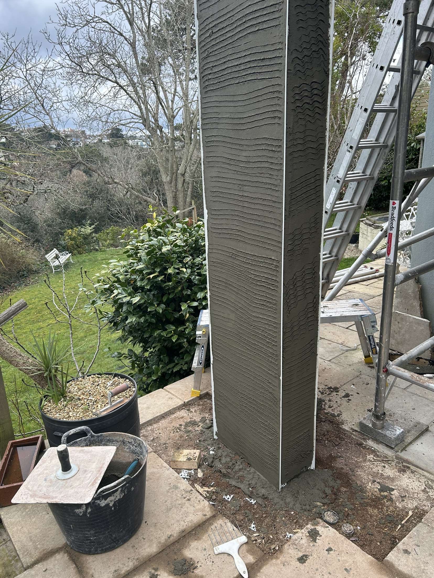 Structural pillar fully constructed and rendered for another contractor who was extending a balcony area.